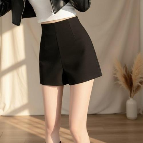 블랙 하이웨스트 핫팬츠 스판 뒷지퍼 3부 숏팬츠 여성 WFHVY1I