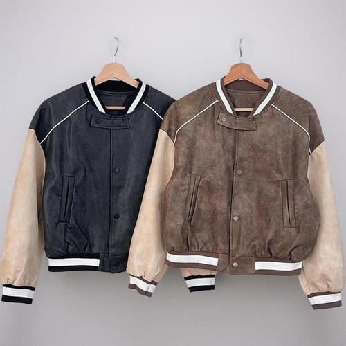 [신상오픈런]여자 빈티지 가죽점퍼 버튼 배색 나그랑 가을 자켓 (40724326)