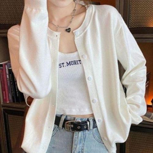 [셀러허브_여성트랜드패션]깔끔한 라운드넥 간절기아우터 니트 가디건자켓 가을 무지 봄가을 패션자켓 남..