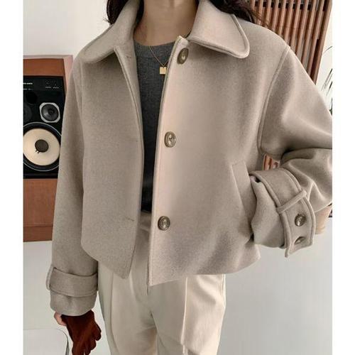 [에이치플러스몰]여성 기모 카라 숏코트 1P 간절기 심플 아우터 캐주얼