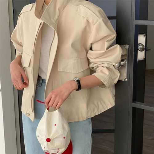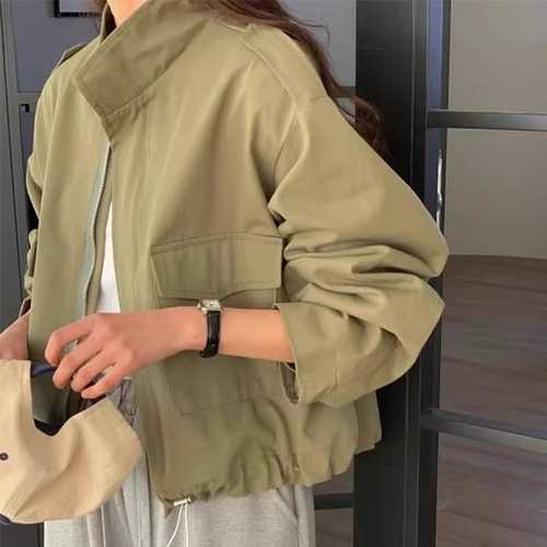 슈팅스타 / 캐주얼 루즈핏 스트링 하이넥 간절기 숏 코트 자켓
