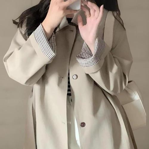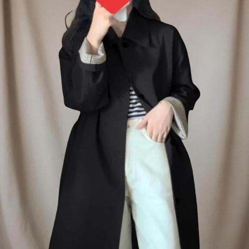[신상오픈런]여성 배색 소매 롱 트렌치코트 벨트 스타일 간절기 외투 (42297624)