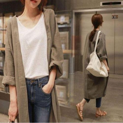 [에이치플러스몰]간절기 베이직 디자인 여자 셔츠형 롱 가디건 코트