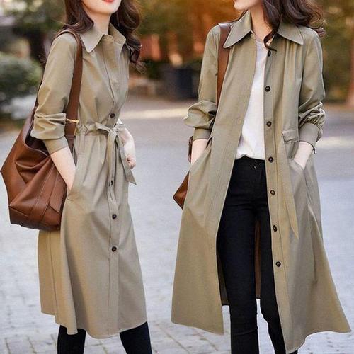 [드리다]여성 봄 간절기 바스락 오버핏 빅사이즈 트렌치 싱글 코트 롱 자켓 미시 캐주얼 출근 모임 하객
