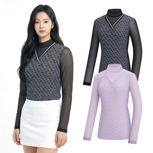 비티알 여성 로고 패턴 통기성 골프 긴팔 목폴라 티셔츠 2341TB152W