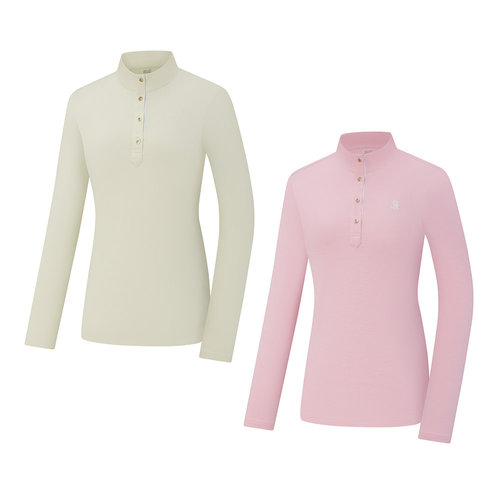 [샵앤]국산 여성 골프 아웃도어 간절기 이너 긴팔 기모 폴라티 SH-WSH-2302-아이보리