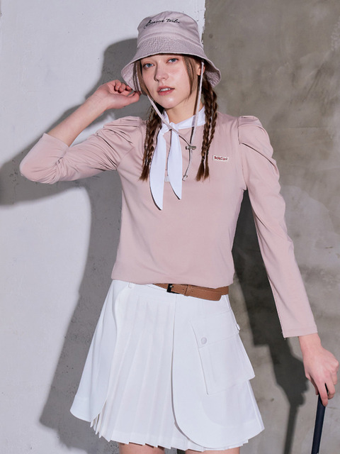 [베네시아12] 퍼프 리본넥 기능성티 베이지