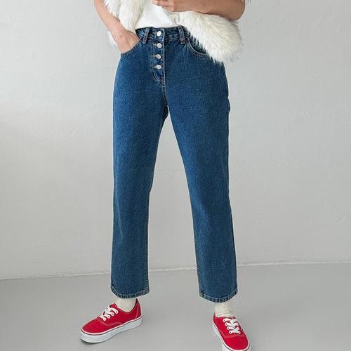 [옷자락] 여자 버튼 겨울 기모데님 일자핏 진청 논스판 청바지