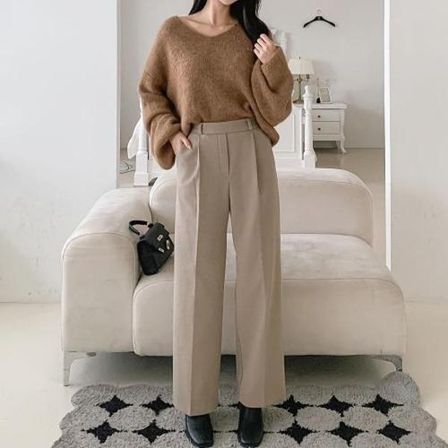 스타일아유 가을 겨울 기모 모직 와이드 팬츠 캐주얼 스트레이트 정장바지 LP0617-0618