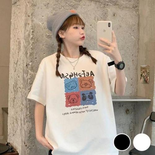 [에이치플러스몰]20대 박스티 라운드티셔츠 신축성 반팔티 여자티