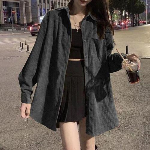 [셀러허브_여성트랜드패션]Rly 여성 두꺼운 골지 골덴 롱셔츠 코듀로이 남방 셔
