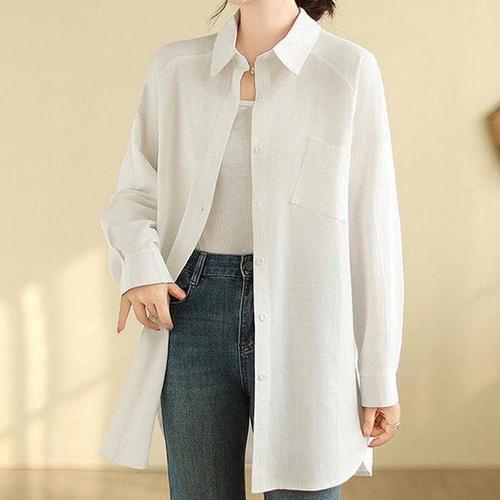 (55~77)마엘셔츠+베스트 롱셔츠 여성봄블라우스 롱티 박스티 여성긴팔셔츠