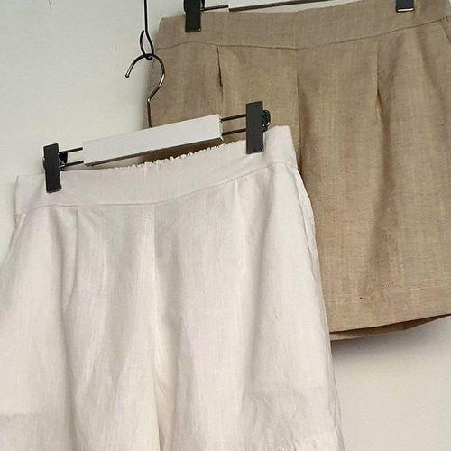 [에이치플러스몰]여름반바지 여자 린넨 뒷밴딩 A라인 반바지 슬랙스