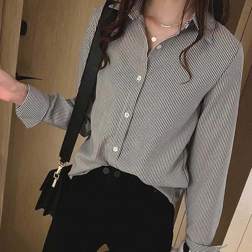 [오너클랜]인기상품 스트라이프셔츠 여성 셔츠 봄가을 블라우스 면접 하객룩 줄무늬 정장 [WFJHMGA_251110]