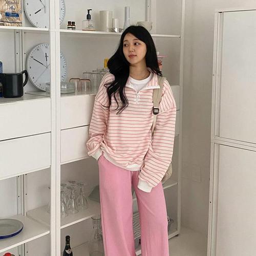 [신상오픈런]하프집업 하이넥 면티 스트라이프맨투맨 와이드팬츠 (31573007)