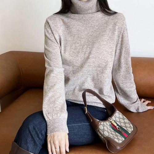 POMTOR 여성용 가을겨울 신상 폴라넥 니트 루즈핏 부들부들 데일리 이너룩 감성 상의