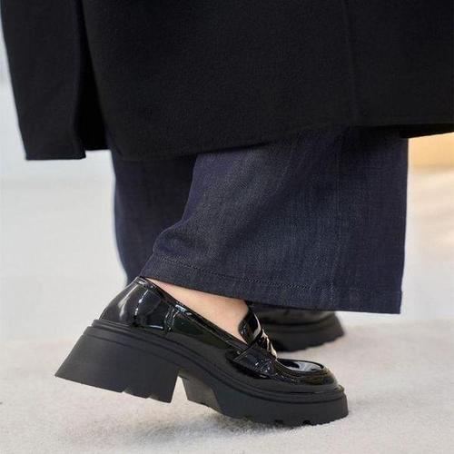 통굽 에나멜 무광 로퍼 여성 원피스 코디 검정 구두 (WFK5LCA)