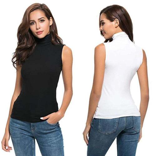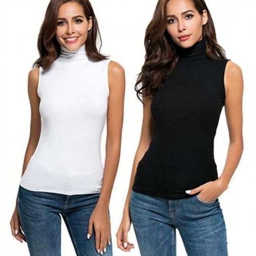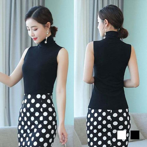 [셀러허브_여성트랜드패션]민소매 이너 슬림핏 폴라티 여름 터틀넥 티셔츠 나시