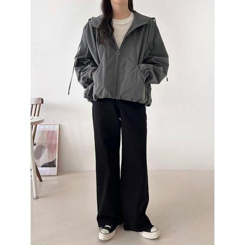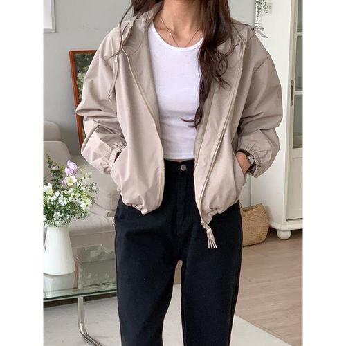 [에이치플러스몰]숏 점퍼 여성 바람막이 심플 스트링 데일리