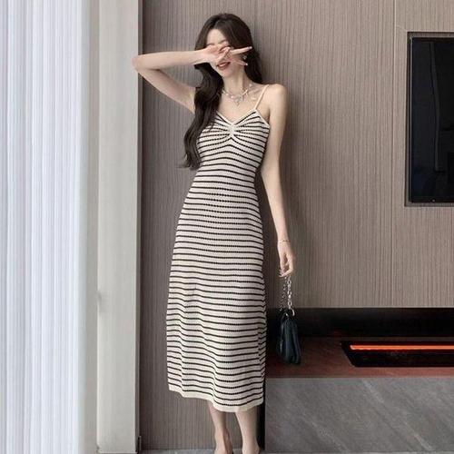 [에이치플러스몰]여성 여름 니트 끈나시 롱원피스 1P 휴가 바캉스룩