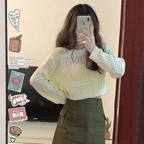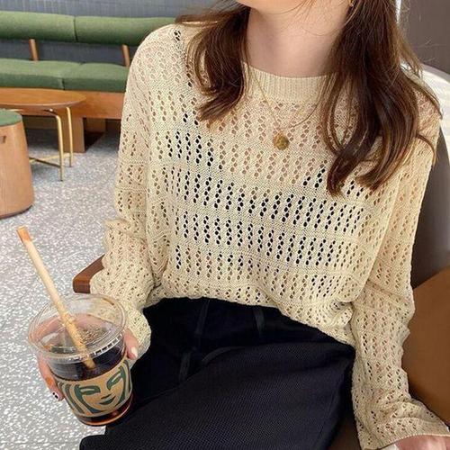 [에이치플러스몰]여성 여름 그물 펀칭 니트 1P 데일리 긴팔 바캉스룩