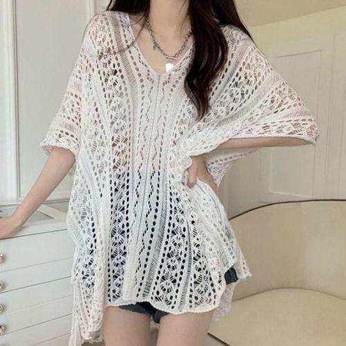 [에이치플러스몰]여성 여름 루즈핏 그물 니트 1P 데일리 긴팔 바캉스룩