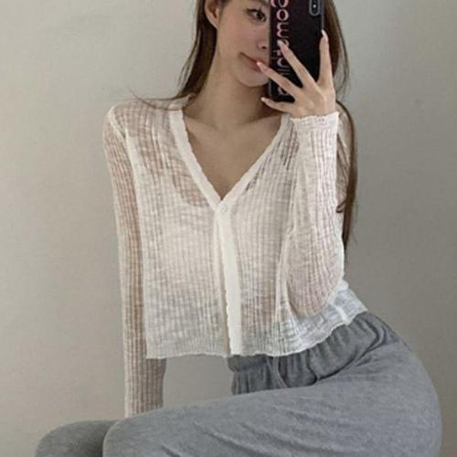 [에이치플러스몰]여성 시스루 크롭 프릴 가디건 1P 러블리 바캉스룩