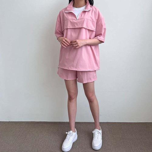 [셀럽하우스]여자 CNLP1209 하프집업 아노락 후드 긴팔 반바지 트레이닝세트