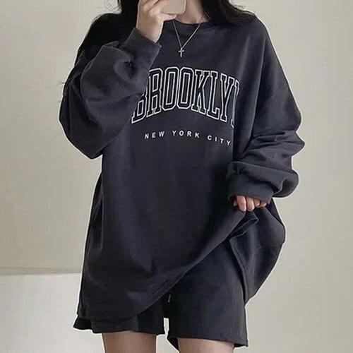 [셀럽하우스]레터링 LRLD8243 디자인 여자 오버핏 긴팔 반바지 트레이닝세트