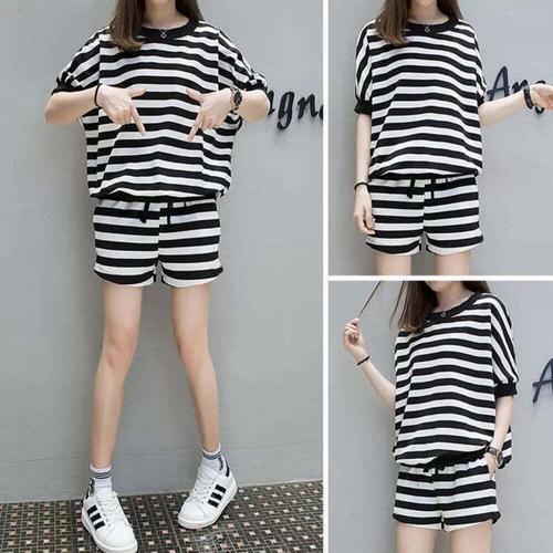[셀럽하우스]여성 ECMI6088 스트라이프 패턴 여름 반팔 반바지 트레이닝세트
