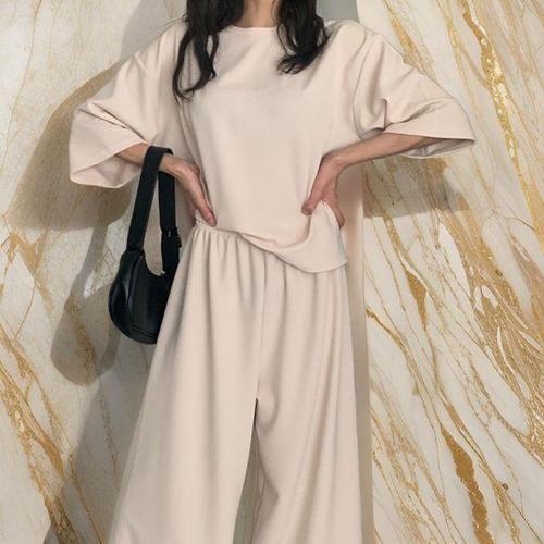 여성 캐주얼 폴리 오버핏 반팔티 팬츠 세트