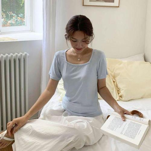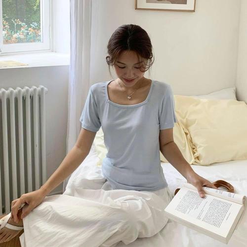 [다잇템]여자 폴리 스퀘어넥 편한 무지컬러 반팔티