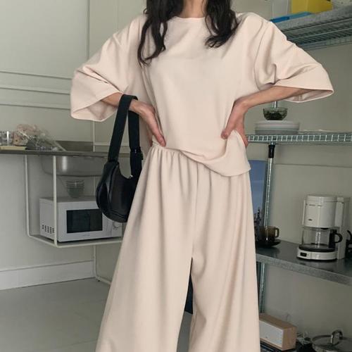 [옷자락]여성 팬츠 폴리 오버핏 밴딩 반팔티 세트