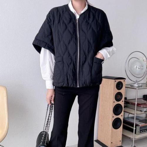 Makone 여성 가을 겨울 반팔 스탠드넥 빅사이즈 퀼팅 패션 패딩 조끼