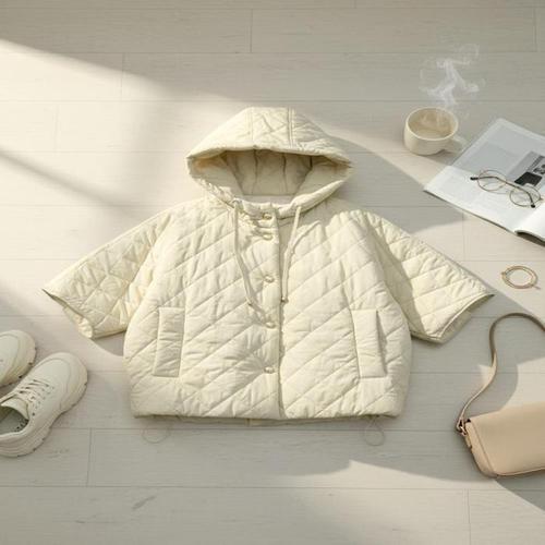 [신상오픈런]여성 심플 퀼팅 후드 스트링 반팔 패딩 재킷 (42612835)