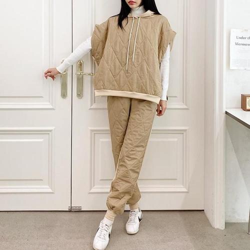 [신상오픈런]패딩 반팔조끼 여성빅사이즈 상체커버 퀼팅조거 세트 (28788348)