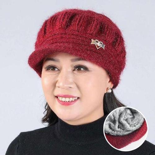 [에이치플러스몰]중년여성 겨울 방한모 할머니모자 융털기모 니트모자 니트 중년 여자 방한모자 기모모자..