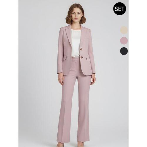 [비비드시크릿가너]SET 여성 솔리드원버튼 봄가을 정장 자켓+통팬츠 세트
