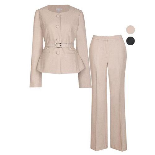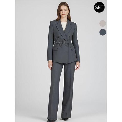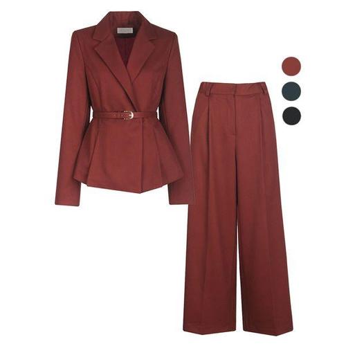 [비비드시크릿가너]SET 여성 앤더블벨티드 봄가을 정장 자켓+통팬츠 세트