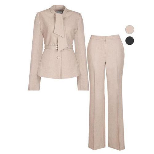 [비비드시크릿가너]SET 여성 타이넥 봄가을 벨티드 정장 자켓+팬츠 세트