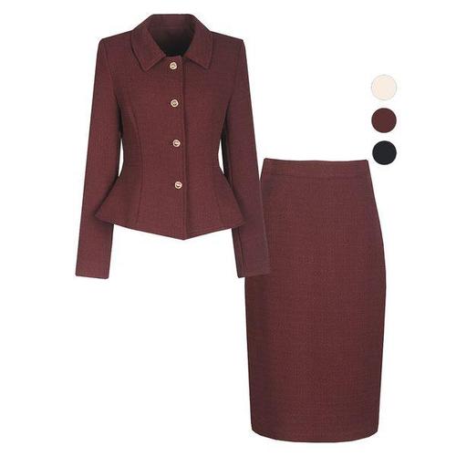 [비비드시크릿가너]SET 여성 메이플렛카라 봄가을 정장 자켓+스커트 세트