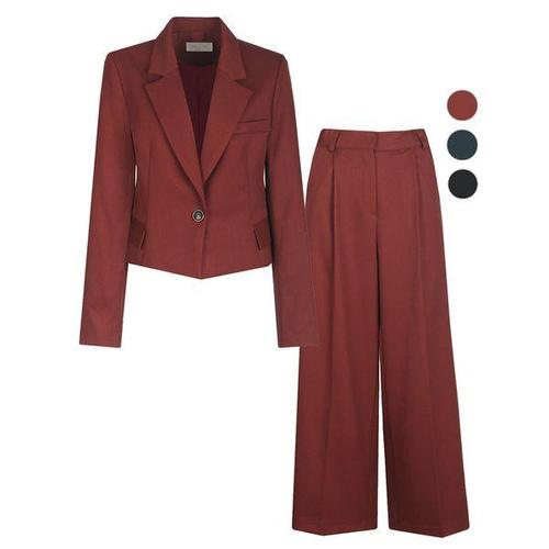 [비비드시크릿가너]SET 여성 월넛 크롭 봄가을 정장 자켓+통팬츠 세트