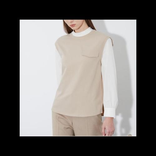 [롯데백화점]보니스팍스 노카라 스티치 슬리브리스 벨트 블라우스 (XP6SH033M0)