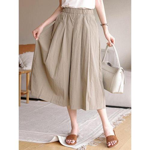 [드리다]여성 여름 바스락 빅사이즈 와이드 8부 밴딩 치마바지 팬츠 40-50대 미시 중년여성 엄마옷 캐주..