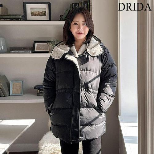 [드리다]여성 겨울 부클 덕다운 빅사이즈 오리털 후드 패딩 점퍼 40대 미시 캐주얼 등원 출근 엄마옷