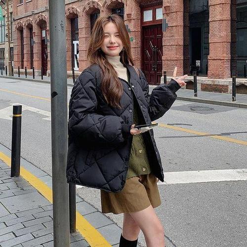 110kg까지 빅사이즈 여성 하프 누빔 순색 패딩 겨울 편한 넥카라 도톰 포켓 단추 보온 솜패딩 웰론 패딩 캐주얼 외출 방한복 3xl 4xl 부드러운 일상 기본템 추천 코트