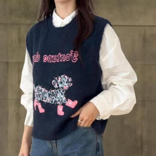 [신상오픈런]여성 유니크 뽀글이 디자인 울 혼합 라운드넥 니트 조끼 (42613034)