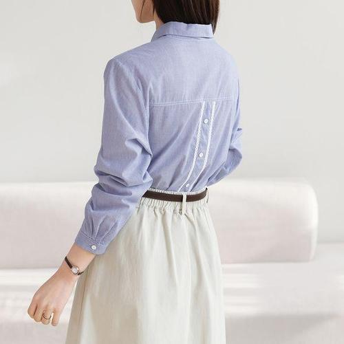 [더블유피비지]레이스 백디테일 스트라이프 셔츠_2color