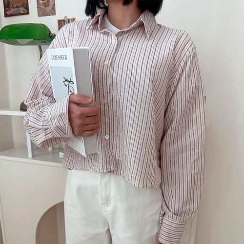 [옷자락] 여자 크롭남방 스트라이프 카라넥 데일리룩 봄 셔츠