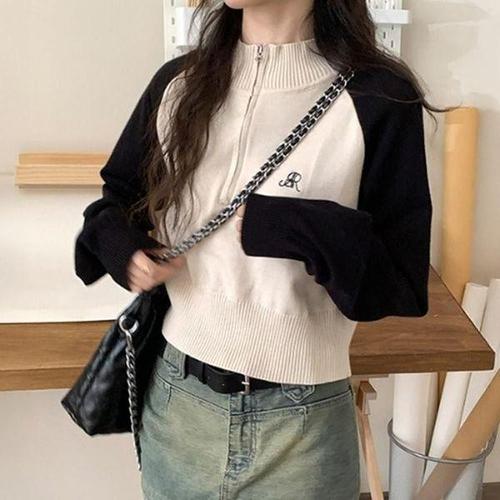 TEMU 여성용 슬림핏 겨울 스웨터 자켓 - 풀 지퍼 하이넥 긴팔 , 레이어링용 블랙 스트럭처드 코트, 세탁기 사용 가능한 오피스 & 캐주얼 아우터, 가을/겨울 트렌치 코트